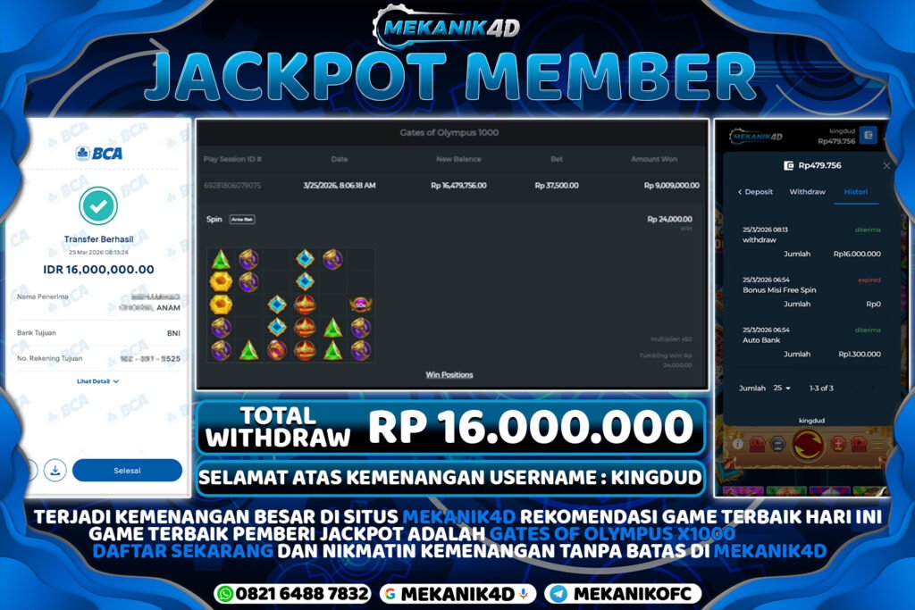 Mau Mendapatkan Kemenangan Nyata Dan Pencairan Cepat? Tentu Saja MEKANIK4D Adalah Pilihan Tepat Untuk Memperoleh Layanan Eksklusif Supaya Lebih Puas Dalam Bermain. Segera Daftarkan Satu Akun Login MEKANIK4D Supaya Bisa Mendapatkan Kemenangan SLOT GATES OF OLYMPUS 1000 Terbesar Sepanjang Berkarir
