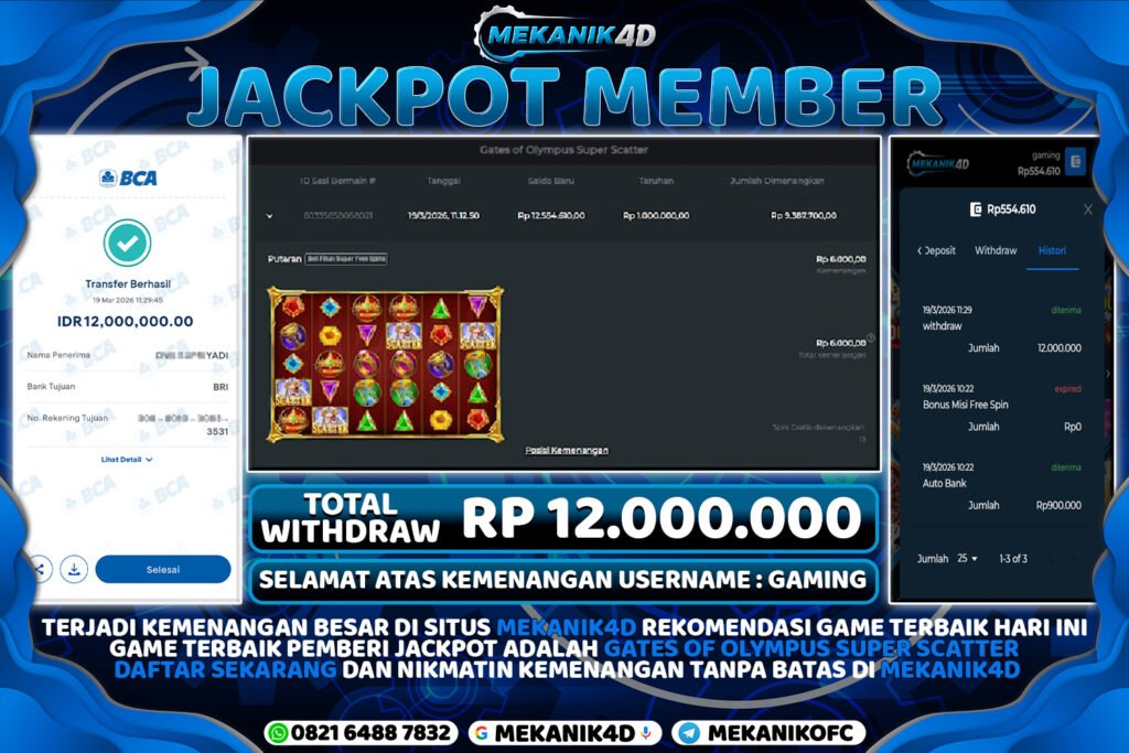 Mau Mendapatkan Kemenangan Nyata Dan Pencairan Cepat? Tentu Saja MEKANIK4D Adalah Pilihan Tepat Untuk Memperoleh Layanan Eksklusif Supaya Lebih Puas Dalam Bermain. Segera Daftarkan Satu Akun Login MEKANIK4D Supaya Bisa Mendapatkan Kemenangan SLOT GATES OF OLYMPUS SUPER SCATTER Terbesar Sepanjang Berkarir