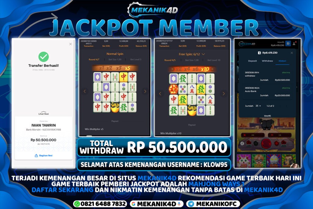 Mau Mendapatkan Kemenangan Nyata Dan Pencairan Cepat? Tentu Saja MEKANIK4D Adalah Pilihan Tepat Untuk Memperoleh Layanan Eksklusif Supaya Lebih Puas Dalam Bermain. Segera Daftarkan Satu Akun Login MEKANIK4D Supaya Bisa Mendapatkan Kemenangan SLOT MAHJONG WAYS 1 Terbesar Sepanjang Berkarir
