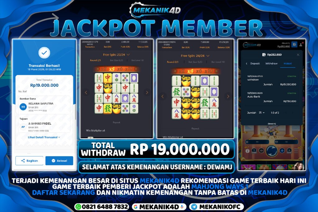 Mau Mendapatkan Kemenangan Nyata Dan Pencairan Cepat? Tentu Saja MEKANIK4D Adalah Pilihan Tepat Untuk Memperoleh Layanan Eksklusif Supaya Lebih Puas Dalam Bermain. Segera Daftarkan Satu Akun Login MEKANIK4D Supaya Bisa Mendapatkan Kemenangan SLOT MAHJONG WAYS 1 Terbesar Sepanjang Berkarir