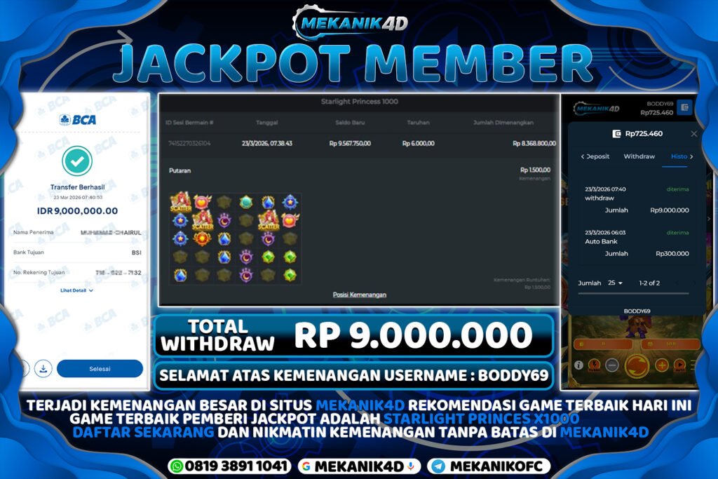 Mau Mendapatkan Kemenangan Nyata Dan Pencairan Cepat? Tentu Saja MEKANIK4D Adalah Pilihan Tepat Untuk Memperoleh Layanan Eksklusif Supaya Lebih Puas Dalam Bermain. Segera Daftarkan Satu Akun Login MEKANIK4D Supaya Bisa Mendapatkan Kemenangan SLOT JACKPOT GAME STARLIGHT PRINCES 1000 Terbesar Sepanjang Berkarir