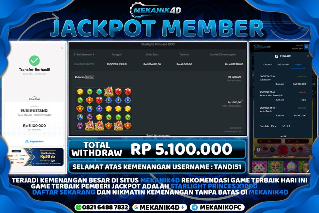 Mau Mendapatkan Kemenangan Nyata Dan Pencairan Cepat? Tentu Saja MEKANIK4D Adalah Pilihan Tepat Untuk Memperoleh Layanan Eksklusif Supaya Lebih Puas Dalam Bermain. Segera Daftarkan Satu Akun Login MEKANIK4D Supaya Bisa Mendapatkan Kemenangan SLOT JACKPOT GAME STARLIGHT PRINCES 1000 Terbesar Sepanjang Berkarir