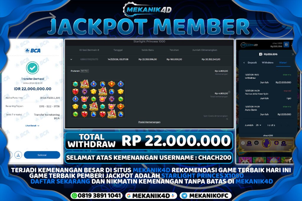 Mau Mendapatkan Kemenangan Nyata Dan Pencairan Cepat? Tentu Saja MEKANIK4D Adalah Pilihan Tepat Untuk Memperoleh Layanan Eksklusif Supaya Lebih Puas Dalam Bermain. Segera Daftarkan Satu Akun Login MEKANIK4D Supaya Bisa Mendapatkan Kemenangan SLOT JACKPOT GAME STARLIGHT PRINCES 1000 Terbesar Sepanjang Berkarir