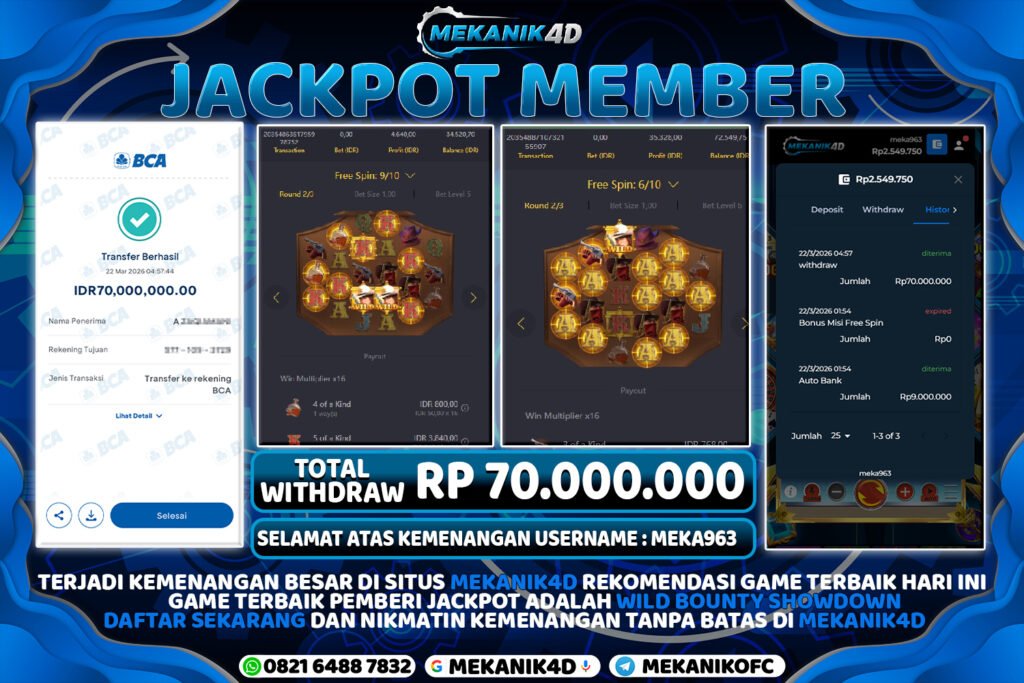 Mau Mendapatkan Kemenangan Nyata Dan Pencairan Cepat? Tentu Saja MEKANIK4D Adalah Pilihan Tepat Untuk Memperoleh Layanan Eksklusif Supaya Lebih Puas Dalam Bermain. Segera Daftarkan Satu Akun Login MEKANIK4D Supaya Bisa Mendapatkan Kemenangan SLOT WILD BOUNTY SHOWDOWN Terbesar Sepanjang Berkarir